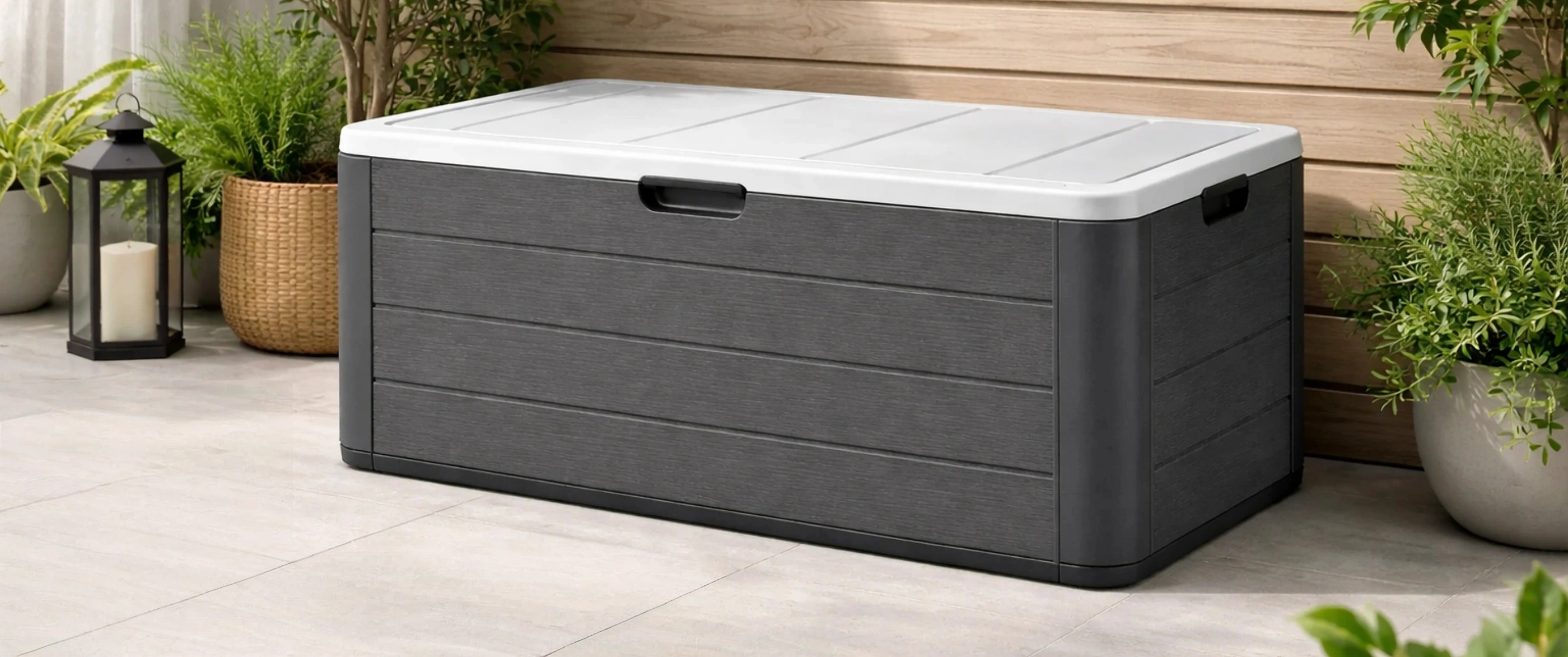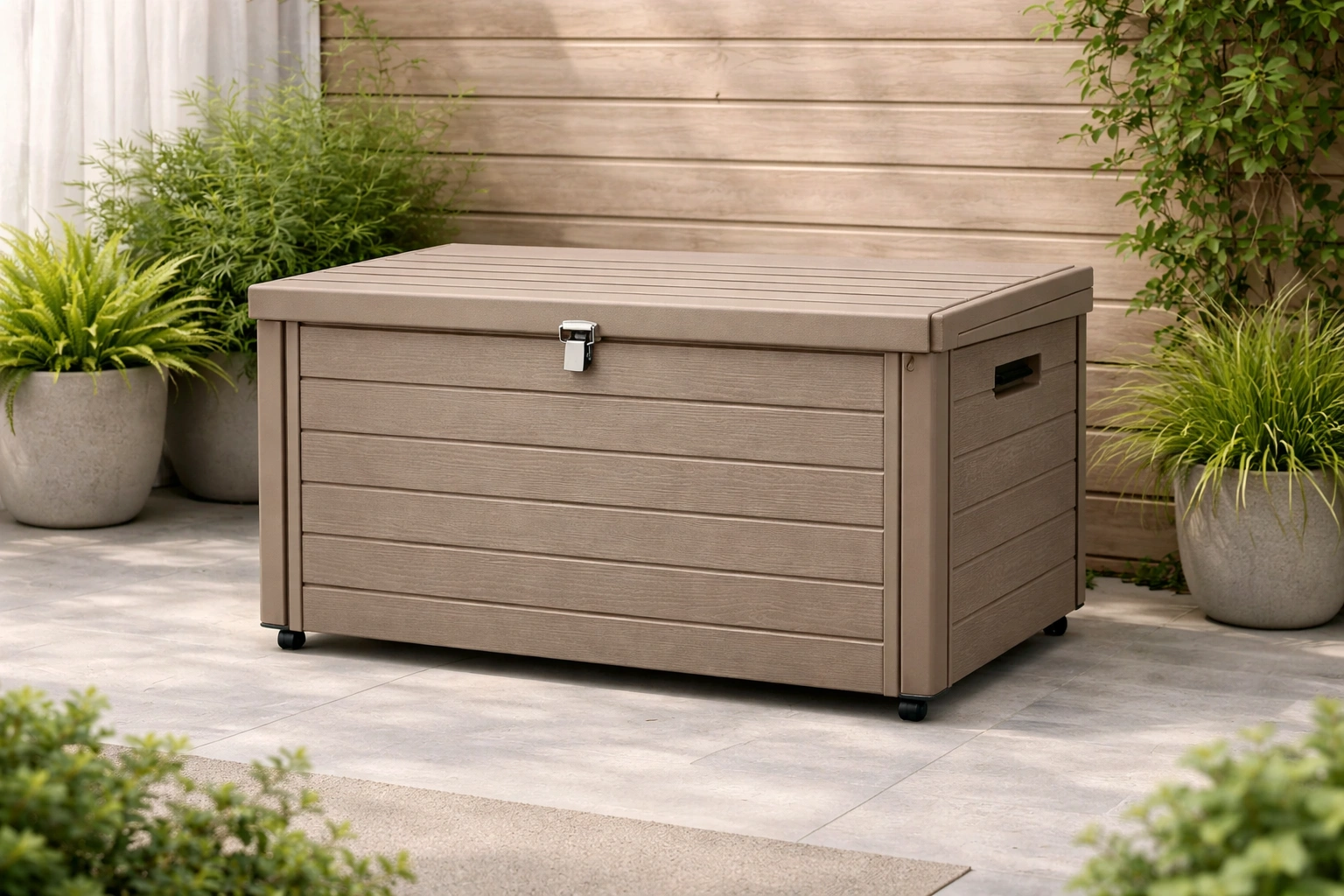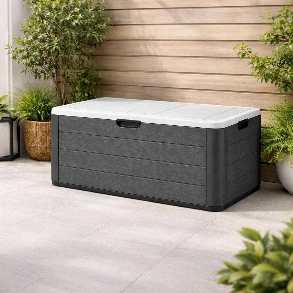 Coffre de rangement extérieur en plastique taupe 117 x 45 x 60 cm
